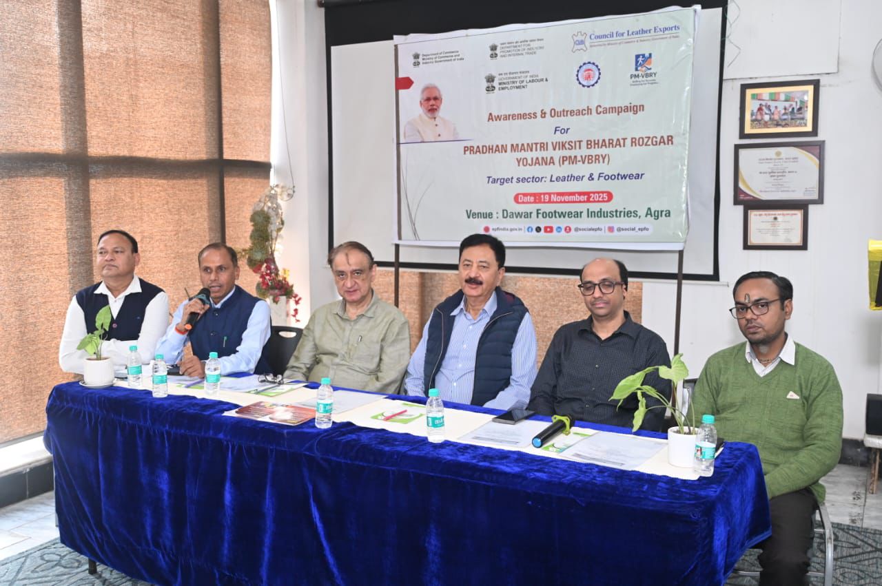 ब्रज पत्रिका, आगरा। कर्मचारी भविष्य निधि संगठन (ईपीएफओ), क्षेत्रीय कार्यालय आगरा एवं काउंसिल फॉर लेदर एक्सपोर्ट्स (सीएलई) के संयुक्त तत्वावधान में मंगलवार को डावर फुटवियर इंडस्ट्रीज़, आगरा में प्रधानमंत्री विकसित भारत रोज़गार योजना (PMVBRY) और कर्मचारी नामांकन योजना (EEC)–2025 पर एक सेमिनार आयोजित किया गया। सेमिनार का मुख्य उद्देश्य नियोक्ताओं एवं कर्मचारियों को इन नई योजनाओं के प्रावधानों, पात्रता शर्तों तथा लाभों के बारे में विस्तृत जानकारी प्रदान करना था।