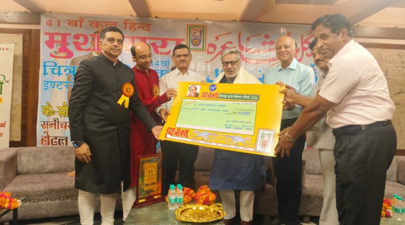 चित्रांशी फिराक इंटरनेशनल अवार्ड शायर मंसूर उस्मानी को, स्व. के.सी. श्रीवास्तव अवार्ड अरुण डंग को प्रदान किया गया।