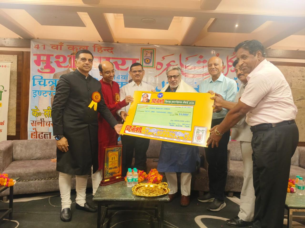 ब्रज पत्रिका, आगरा। चित्रांशी संस्था द्वारा पद्म भूषण प्रो.रघुपति सहाय फ़िराक गोरखपुरी की याद में 41वें चित्रांशी कुल हिंद मुशायरे और 17वें फ़िराक इंटरनेशनल अवार्ड समारोह का आयोजन 25 अप्रैल की शाम आगरा कैंट स्थित होटल ग्रैंड किया गया। जिसमें चौथा केसी श्रीवास्तव अवार्ड प्रदान किया गया। मुल्क के नामचीन शायरों ने अपने-अपने बेहतरीन कलाम पेश किए।